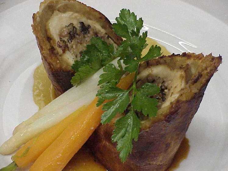 Chancelier Restaurant in Cheverny France, made of the Chicken Roulade, his specialty.